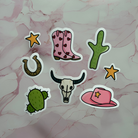 Introducing the Cowboy Romance Book Genre Vinyl Sticker Pack, which includes icons from the popular bookmarks. This pack contains 7 different designs including: stars, bull head, cowboy boots, 2 types of cactus & cowboy hat which all vary in size and have all been exclusively designed for DBC.