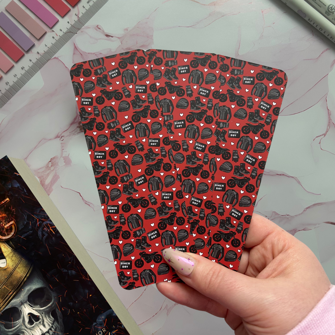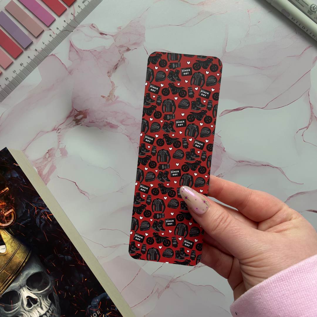 Introducing the Biker Boy bookmark. This has been exclusively designed for DBC, meaning no one else has it and is full of biker inspired icons with a DBC twist on a bright red base.