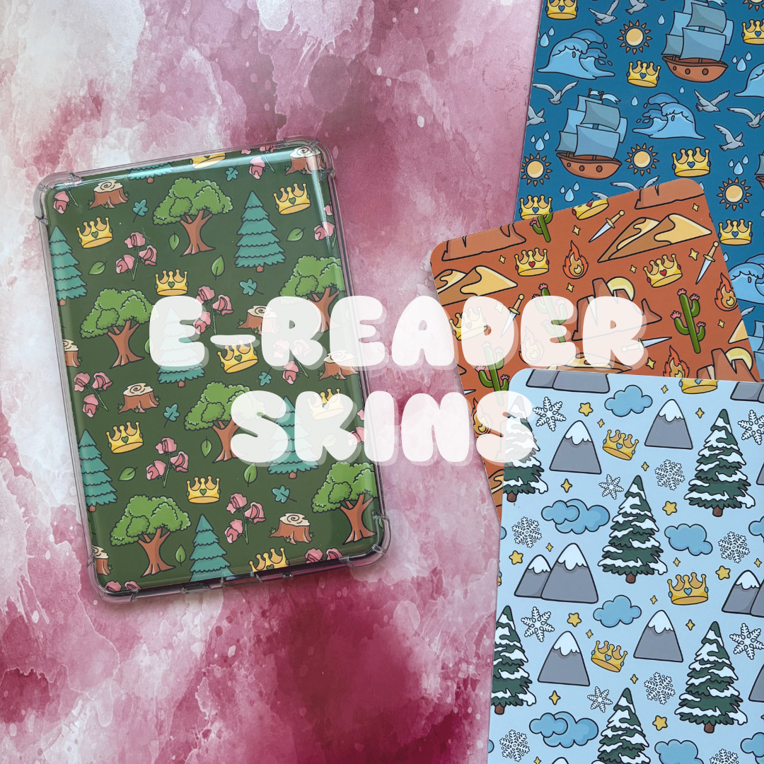 Introducing the DBC x Laura Carter Realm E-Reader Skins. These have been exclusively designed for our collection meaning no one else has them, and are officially licensed by Laura Carter. They are currently available in the four different realms..