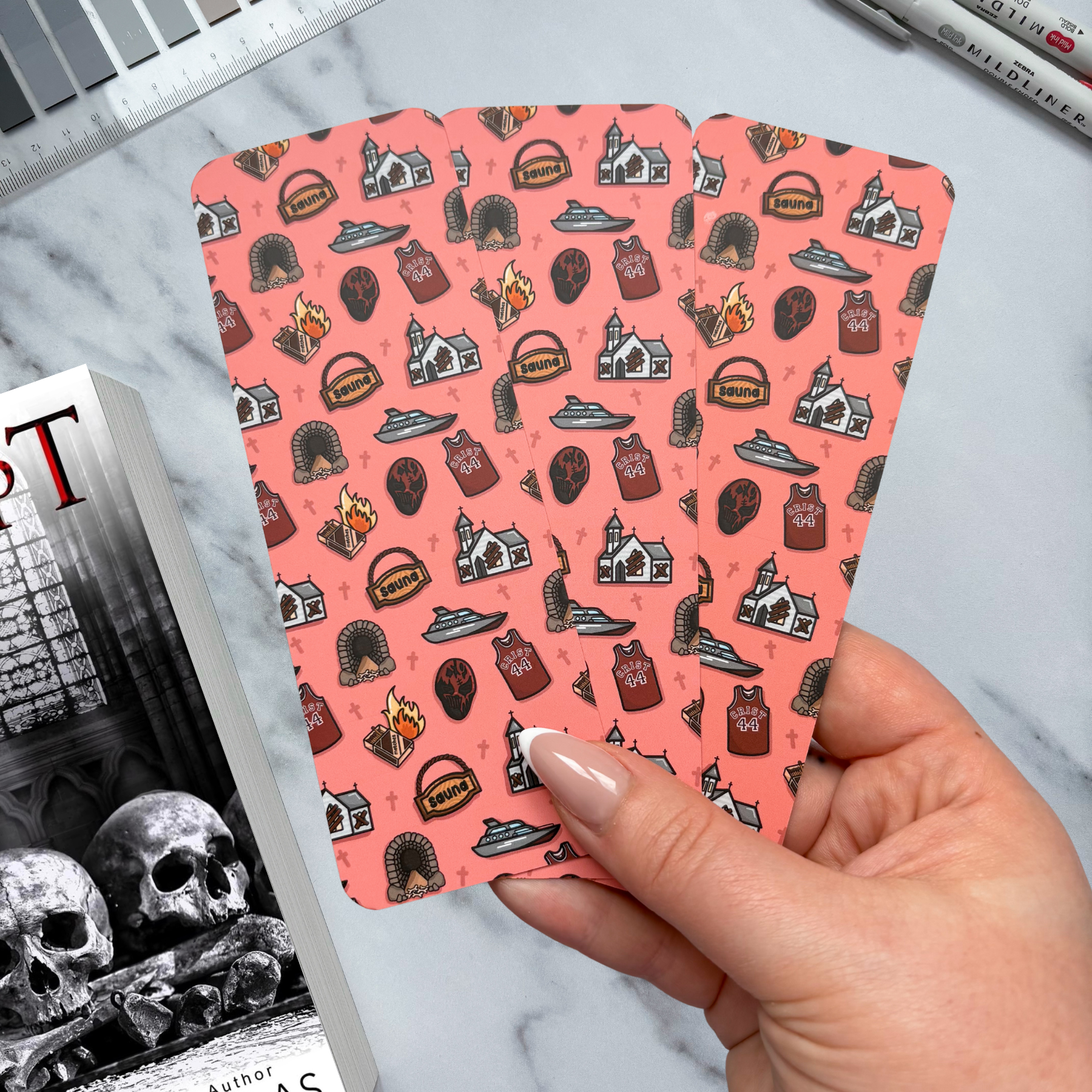 Introducing the Corrupt bookmark, which is book one in the Devil's Night Series. This design is full of icons that relate to the book - some are obvious whereas some are little easter eggs if you haven't read the series! The icons include: Michael's mask, St Killian's, Catacombs, Crist Jersey, Yacht, Matchbox and Flame, Sauna Sign. It has been exclusively designed for Dumb Blonde Club meaning you can't get it anywhere else!