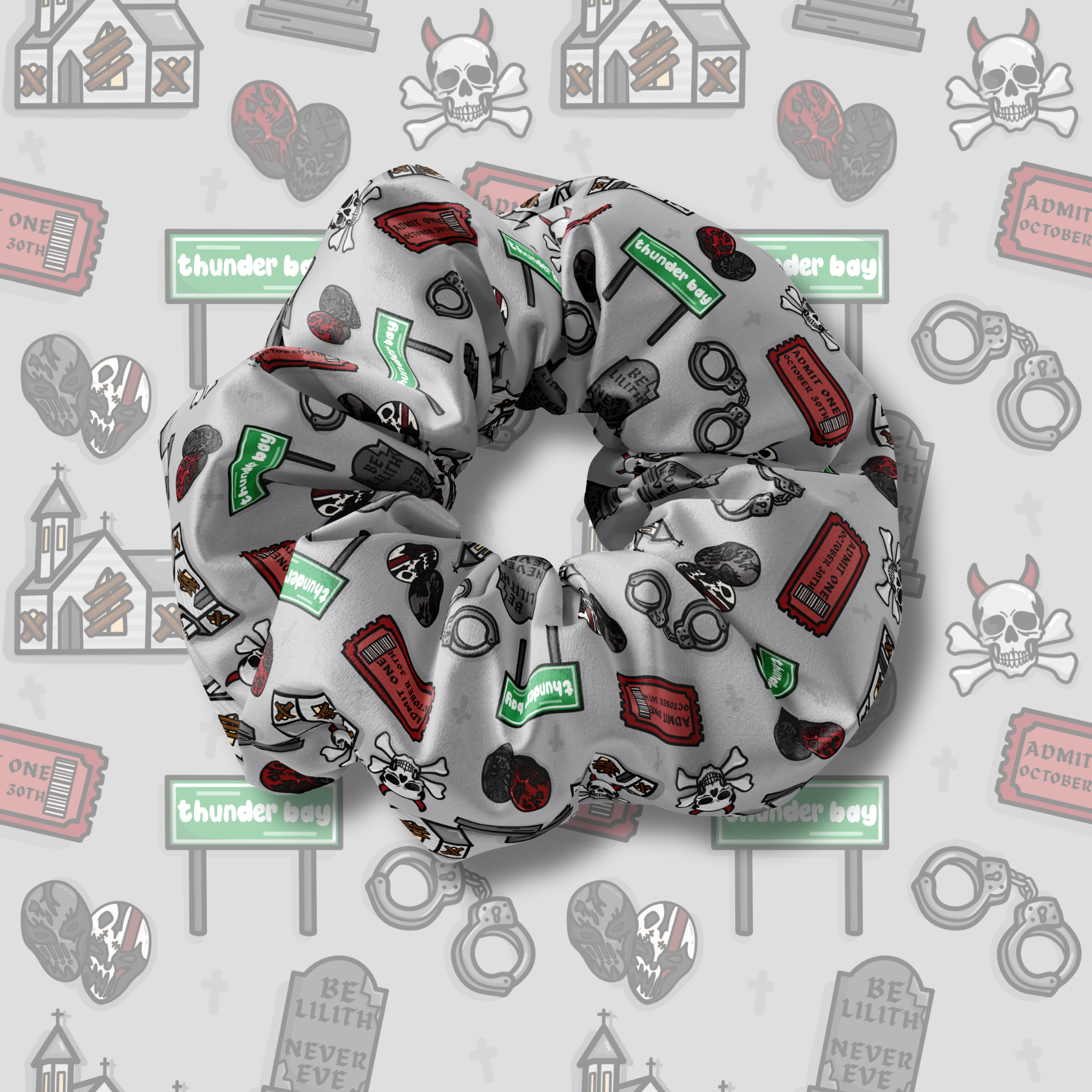 Introducing the Devil's Night Series scrunchie. These designs are full of icons that relate to the Devil's Night series - some are obvious whereas some are little easter eggs if you haven't read the series! The icons include: St Killian's, Michael & Damon's masks, Kai & Will's masks, handcuffs, Thunder Bay street sign, a ticket for Devil's Night and a gravestone with a popular quote. It has been exclusively designed for Dumb Blonde Club meaning you can't get it anywhere else!
