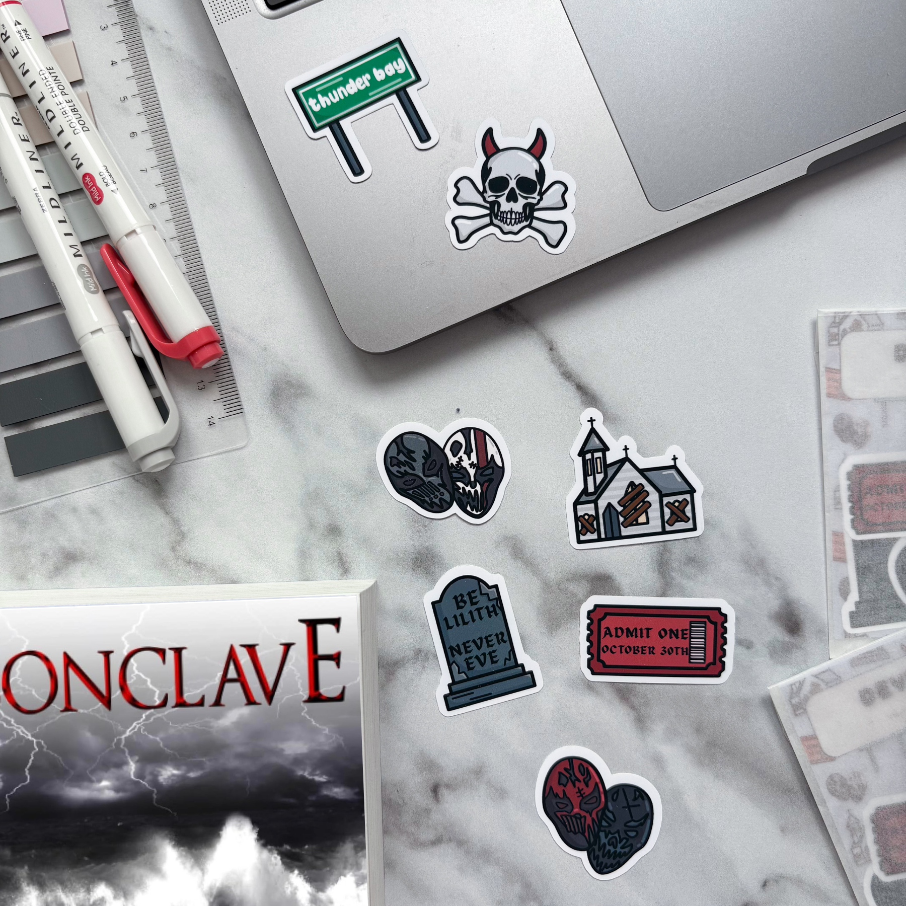 Introducing the Devil's Night Series vinyl sticker pack. These designs are full of icons that relate to the Devil's Night series - some are obvious whereas some are little easter eggs if you haven't read the series! The icons include: St Killian's, Michael & Damon's masks, Kai & Will's masks, handcuffs, Thunder Bay street sign, a ticket for Devil's Night and a gravestone with a popular quote. It has been exclusively designed for Dumb Blonde Club meaning you can't get it anywhere else!
