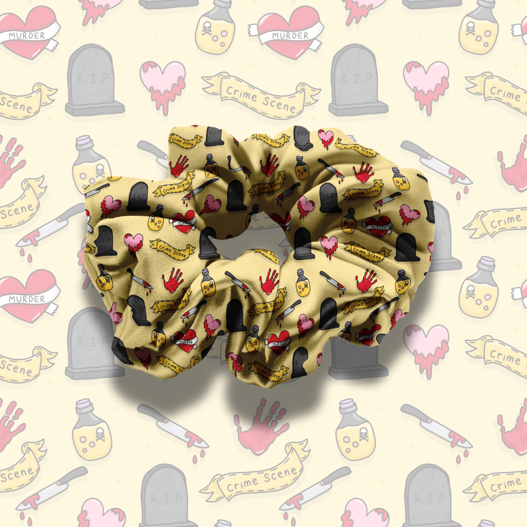 Introducing the Crime N' Thriller Book Genre Scrunchie, full of gruesome crime and thriller icons on a yellow base. It has been exclusively designed for DBC - meaning no one else has it and is perfect for any book lovers out there who want to add a bookish touch to their daily wardrobe.