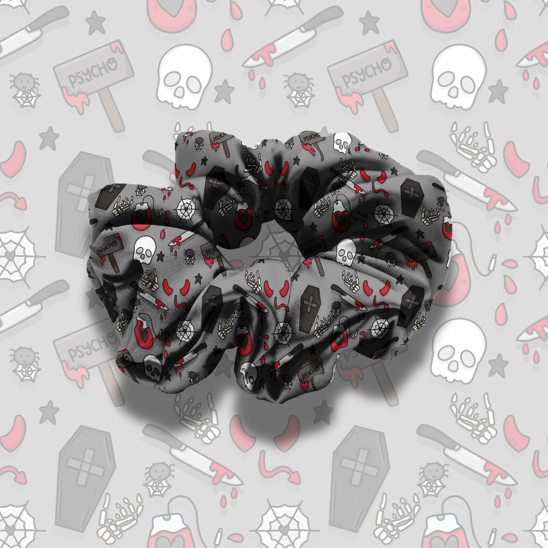 Introducing the Horror Book Genre Scrunchie, full of spooky and scary horror icons on a dark grey base. It has been exclusively designed for DBC - meaning no one else has it and is perfect for any book lovers out there who want to add a bookish touch to their daily wardrobe.