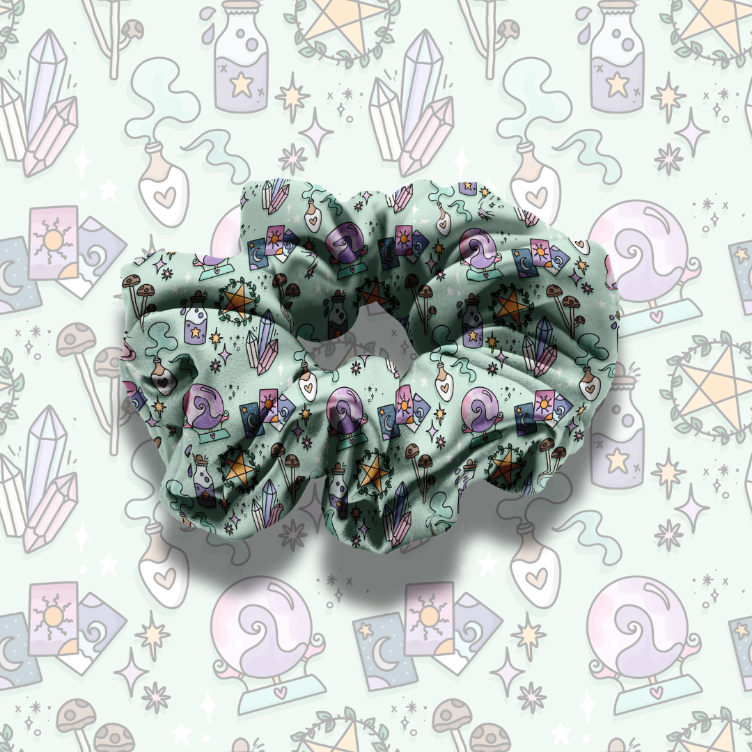 Introducing the Mystic Book Genre Scrunchie, full of mystic/witchy icons on a pastel mint base. It has been exclusively designed for DBC - meaning no one else has it and is perfect for any book lovers out there who want to add a bookish touch to their daily wardrobe.