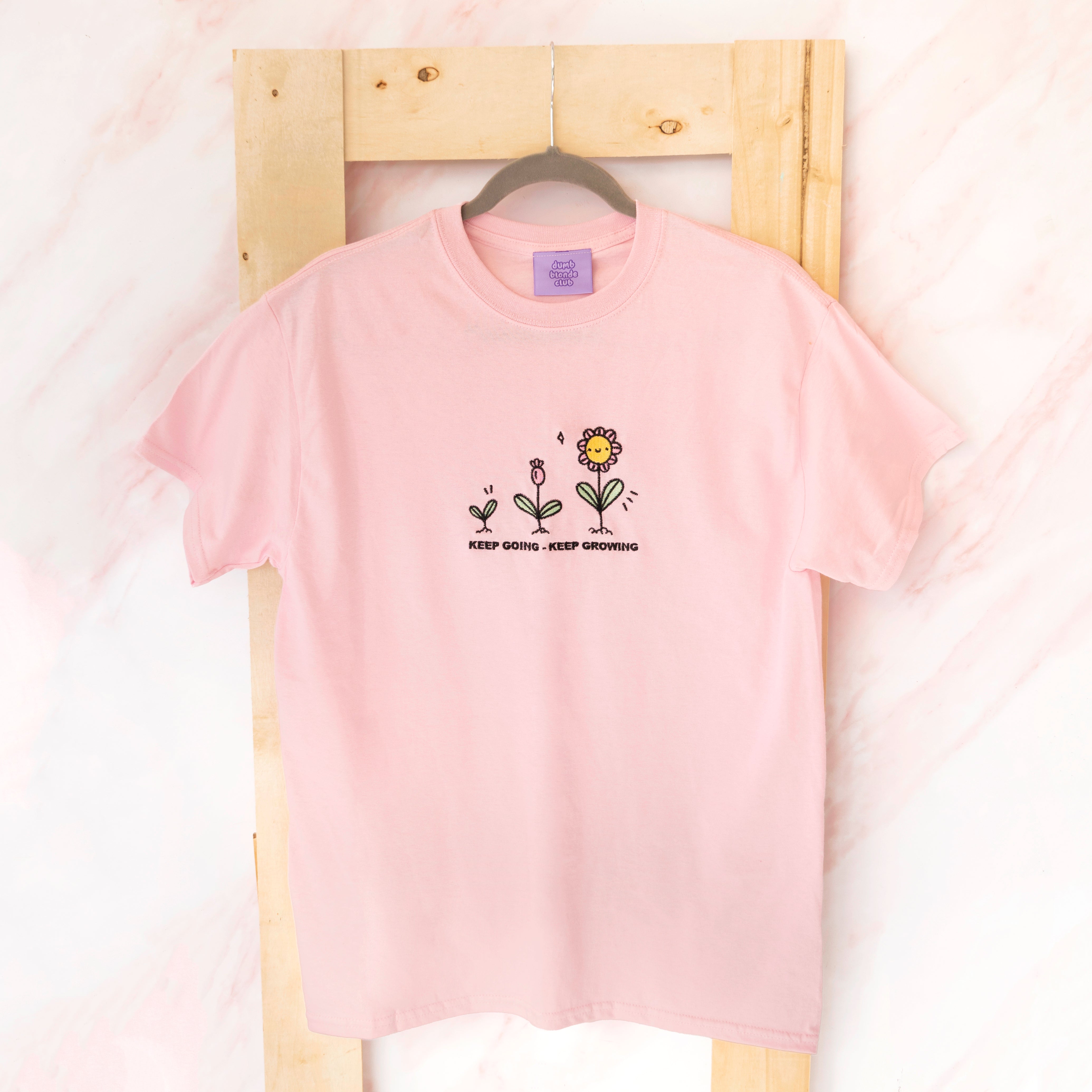 Keep Going, Keep Growing T-Shirt - Ready to Buy - S & M - Baby Pink