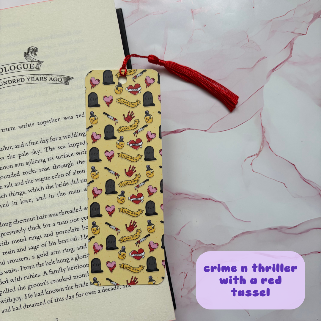 These designs were a error from my printing company, they sent them with drill holes when the DBC bookmarks don't have those. I've bought some tassels to try sell the stock of these I have, they are perfect condition but they are heavily discounted just so I can try make space. I've tried to match the tassels as best as possible to the design/elements of the design.