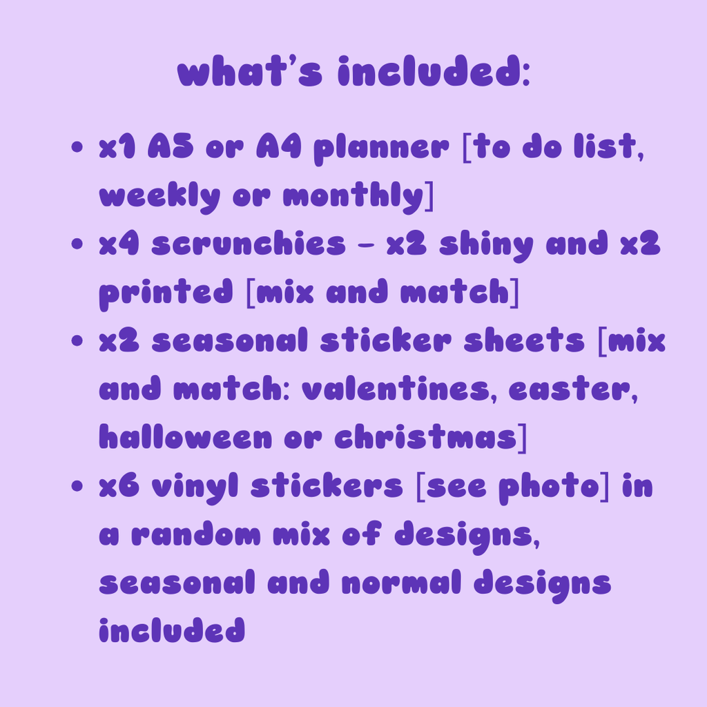 - x1 A5 [to do planner] or A4 planner [weekly or monthly]