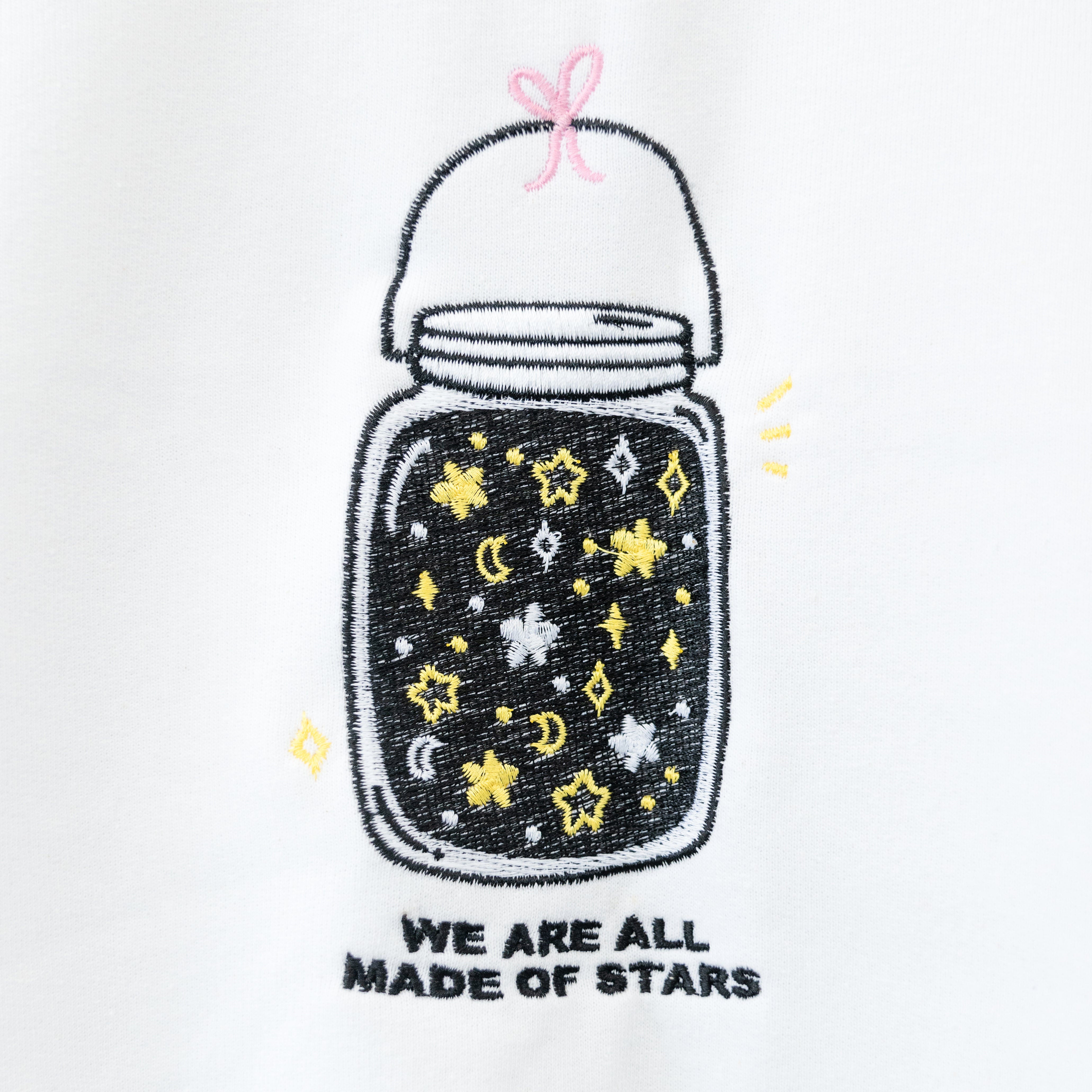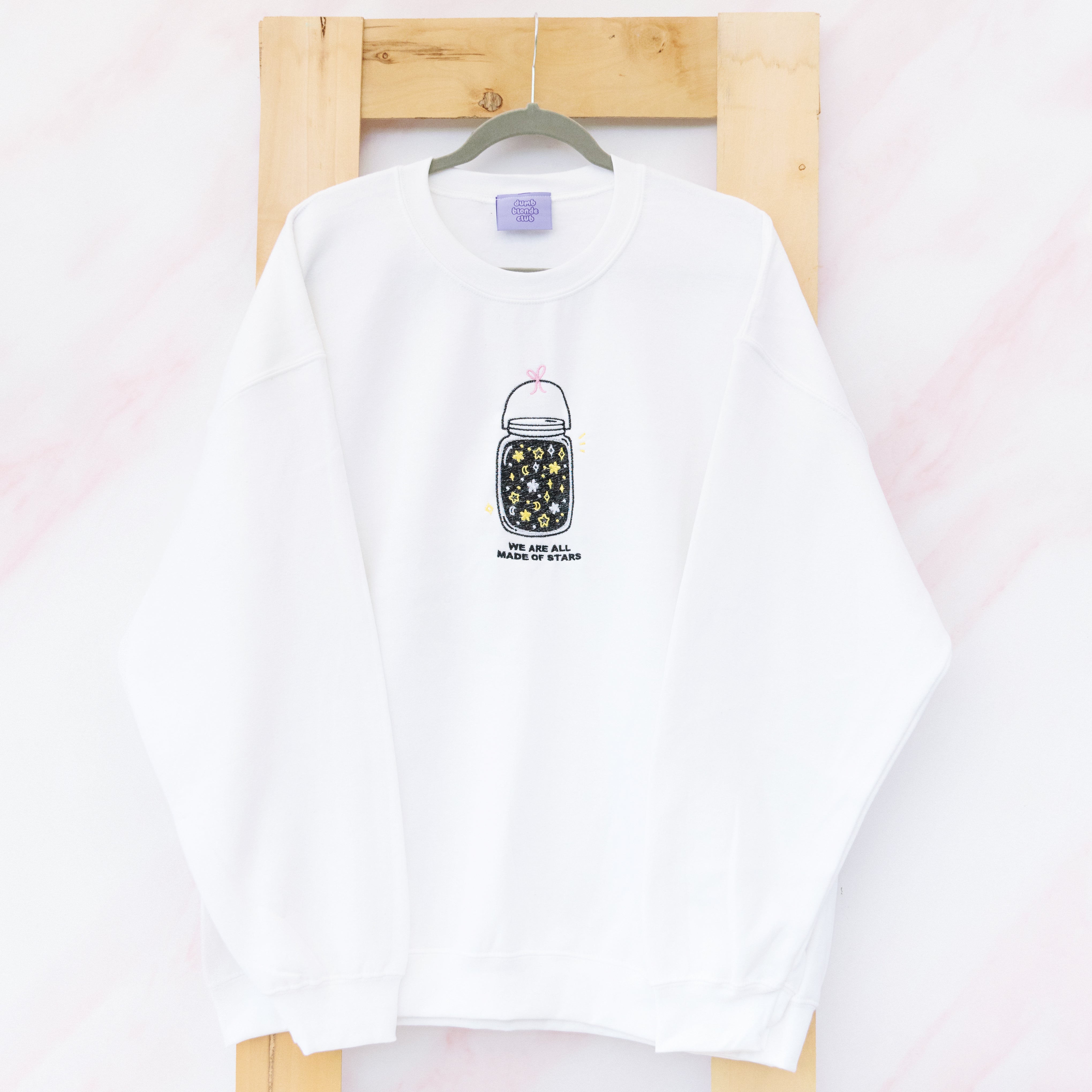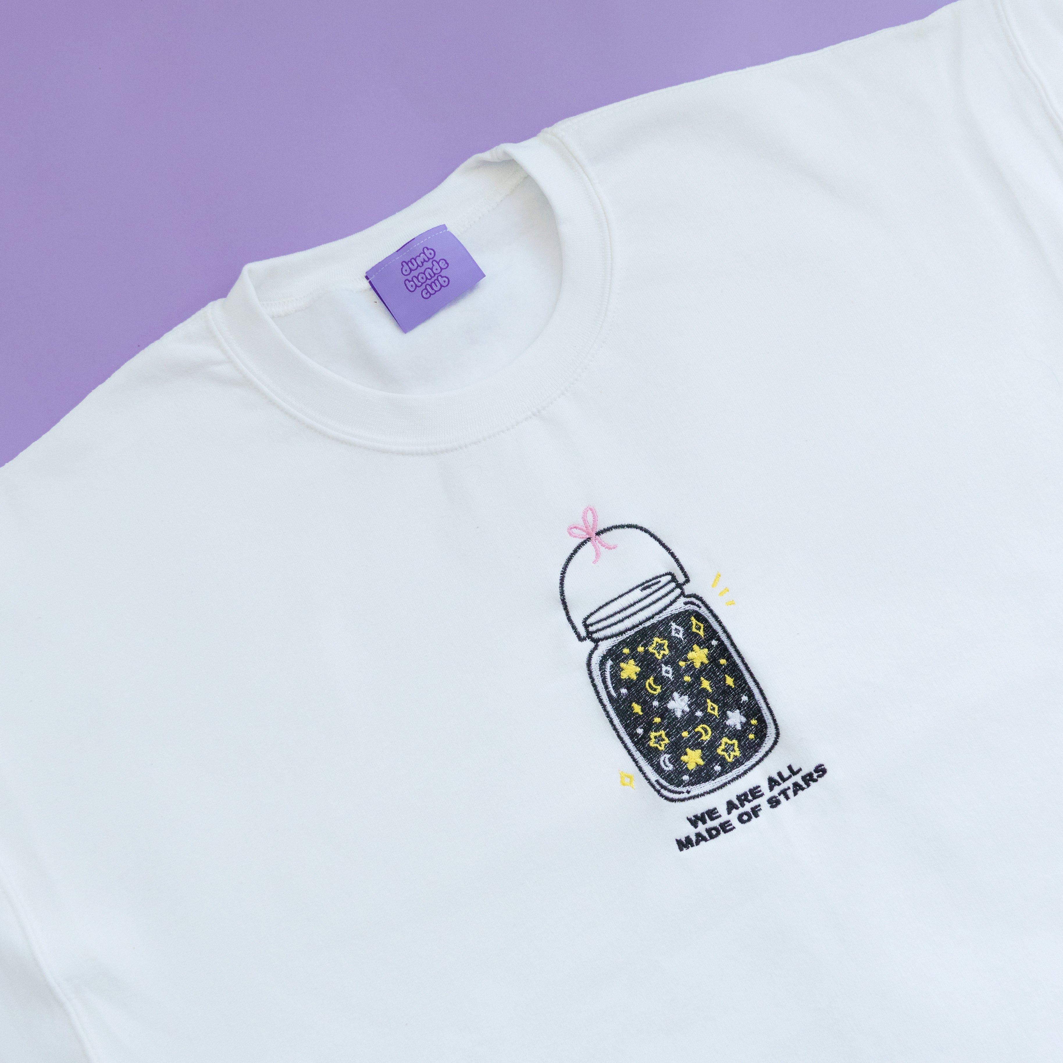 Introducing the Made of Stars sweatshirt. Get ready to embrace your sparkle like the star you are with this adorable tee. The jar represents us, our filling, our blueprint - we are all made of stars. It is exclusively designed for DBC - meaning no one else has it! This cosy sweatshirt is the perfect edition to your wardrobe.