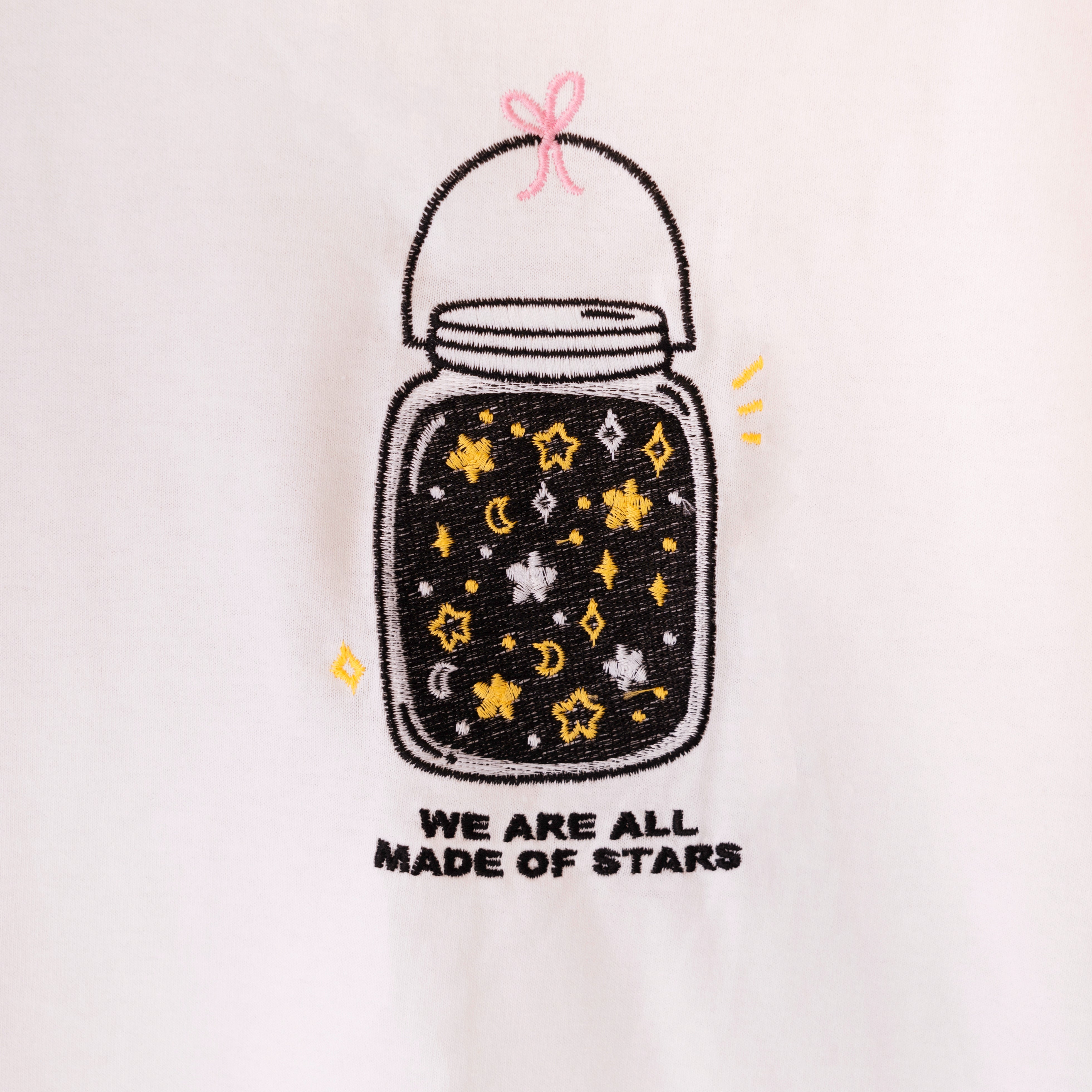 Introducing the Made of Stars T-Shirt. Get ready to embrace your sparkle like the star you are with this adorable tee. The jar represents us, our filling, our blueprint - we are all made of stars.