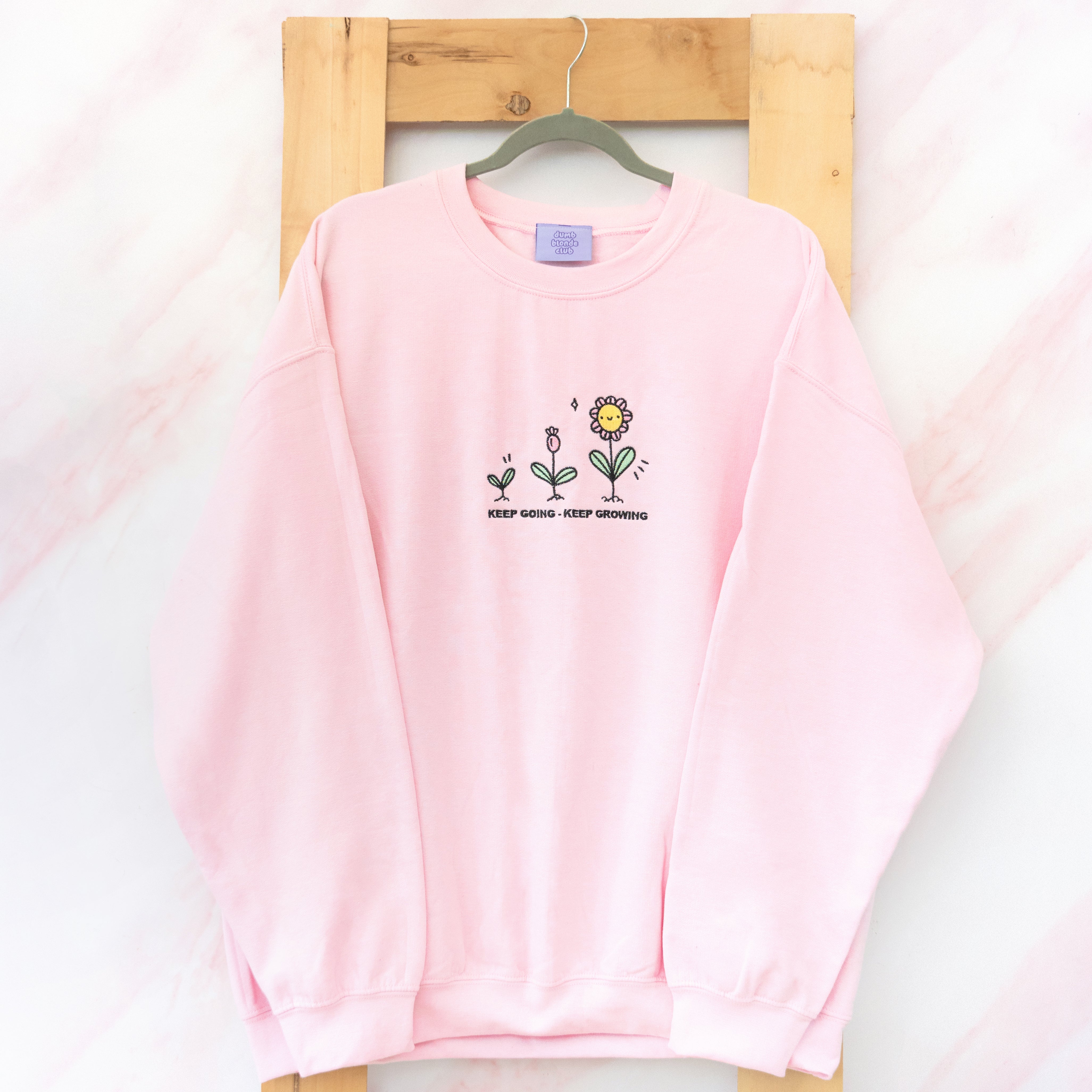 Introducing the Keep Going, Keep Growing sweatshirt. Growth is a big thing and can sometimes feel super overwhelming but you need to keep going and keep growing. Don't forget - we all grow at different rates and that's ok, don't be too hard on yourself. It is exclusively designed for DBC - meaning no one else has it! This cosy sweatshirt is the perfect edition to your wardrobe.