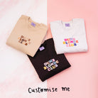 Each sweatshirt is embroidered at home on my machine meaning it can be fully customisable. If you don't wish to have the same thread colour as the ones shown in the images there is the option to change this. Simply choose your base out of the list provided and leave me a little note if you want to have different thread colours.